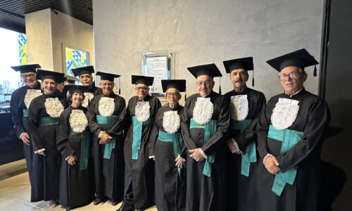 A solenidade ocorreu com toda a magnitude devida. Todos os participantes vestiram suas becas, revivendo o orgulho de 1975, quando receberam seus diplomas pela primeira vez.