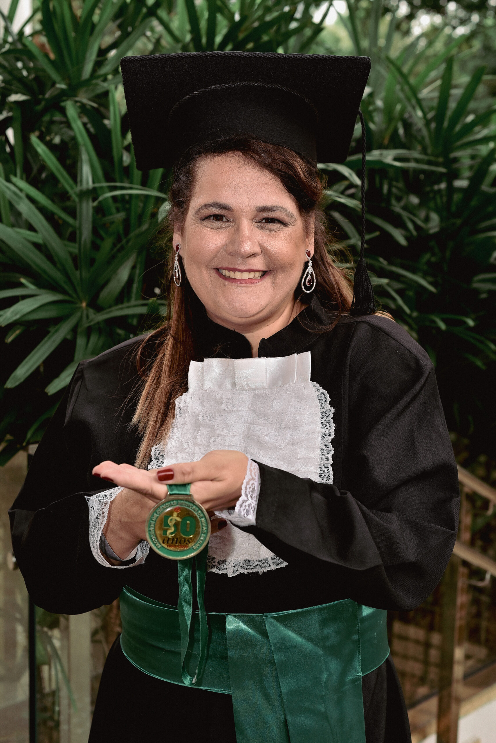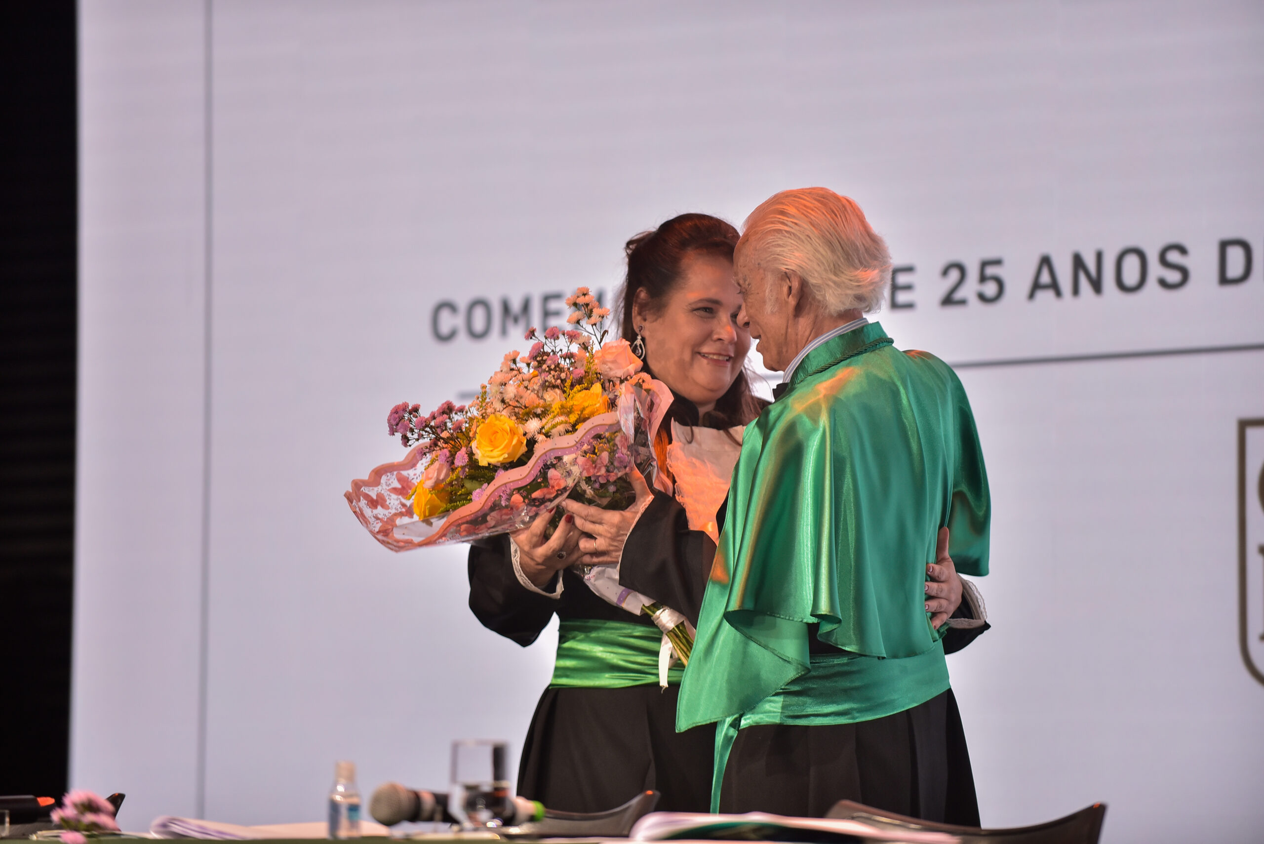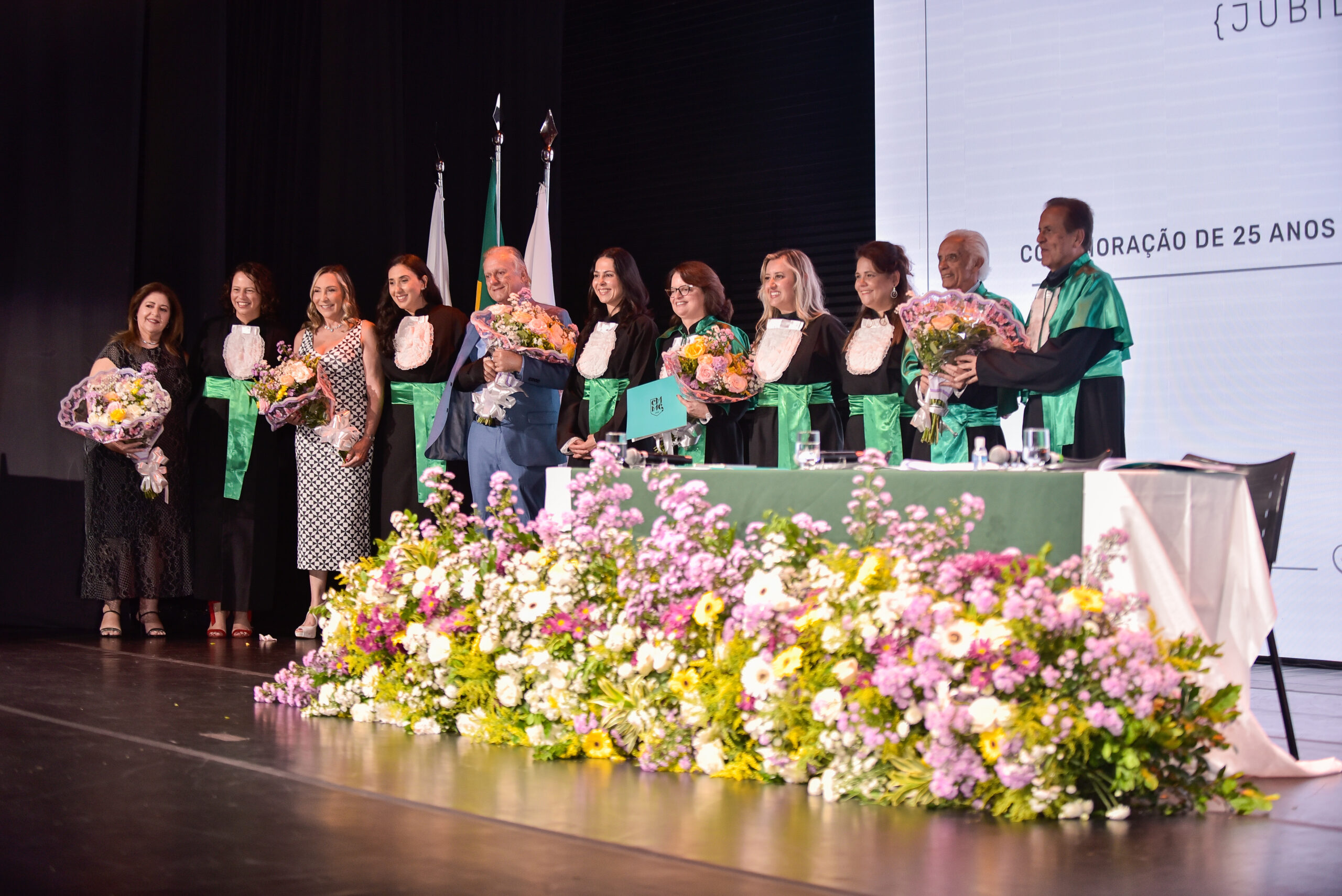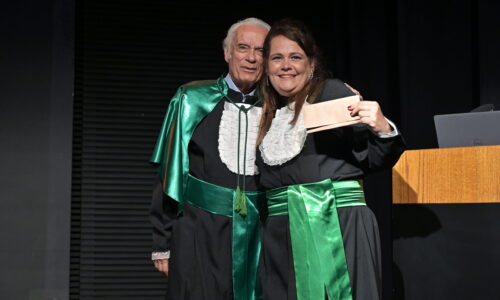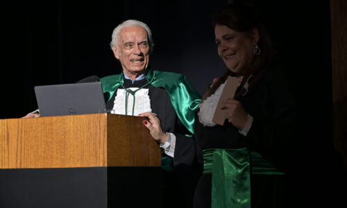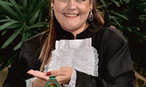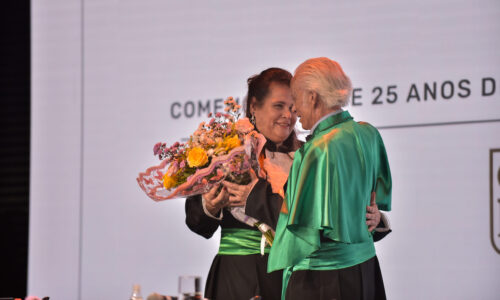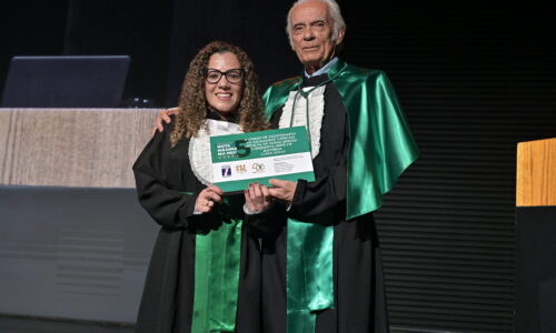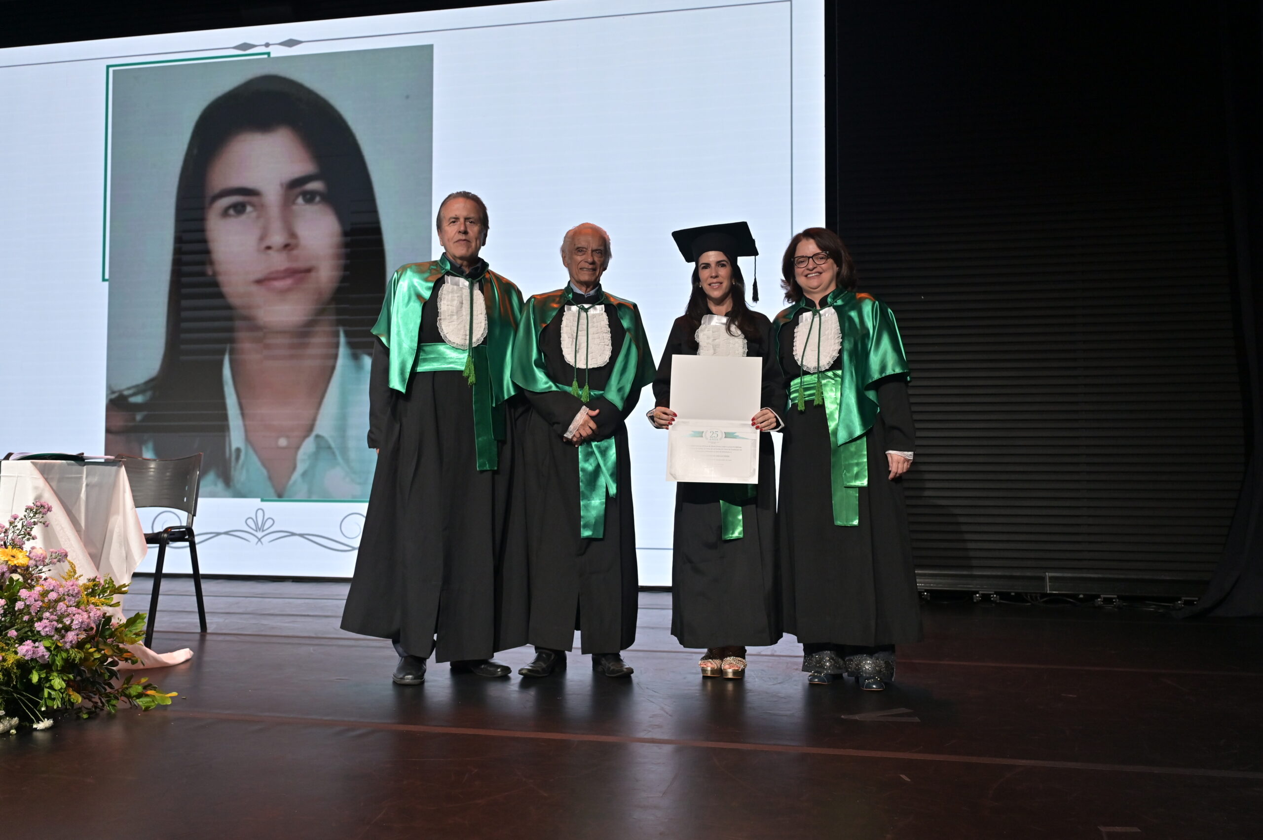 Um agradecimento especial foi dedicado à egressa Juliana Drumond Furquim Werneck, idealizadora e principal organizadora da cerimônia comemorativa. Muito querida por seus colegas, Juliana é reconhecida por manter o grupo unido e promover momentos de celebração ao longo dos anos. Em sua palestra, o Prof. Geraldo Magela reservou um momento especial para homenageá-la, presenteando-a com sua apresentação e destacando a relevância histórica de sua família para a Feluma e para a medicina mineira. Seu avô, Dr. Jaime Werneck, foi professor da FCM-MG e médico ginecologista, e seu bisavô, Dr. Hugo Werneck, foi um dos fundadores da UFMG, um dos primeiros médicos de Belo Horizonte e mentor do Dr. Lucas Machado.