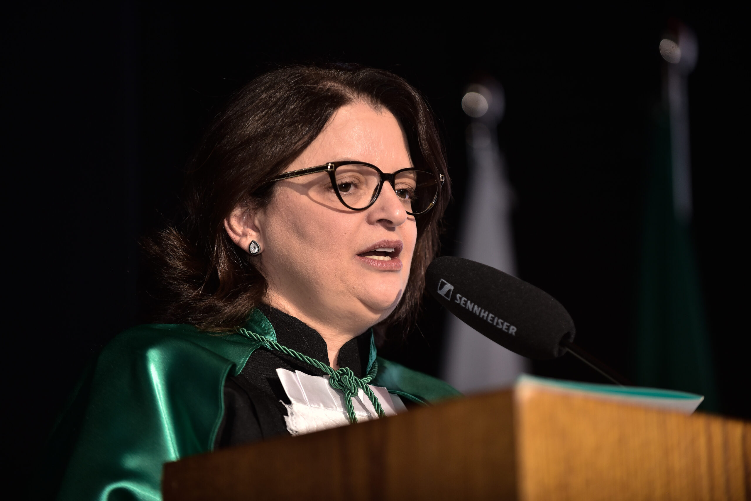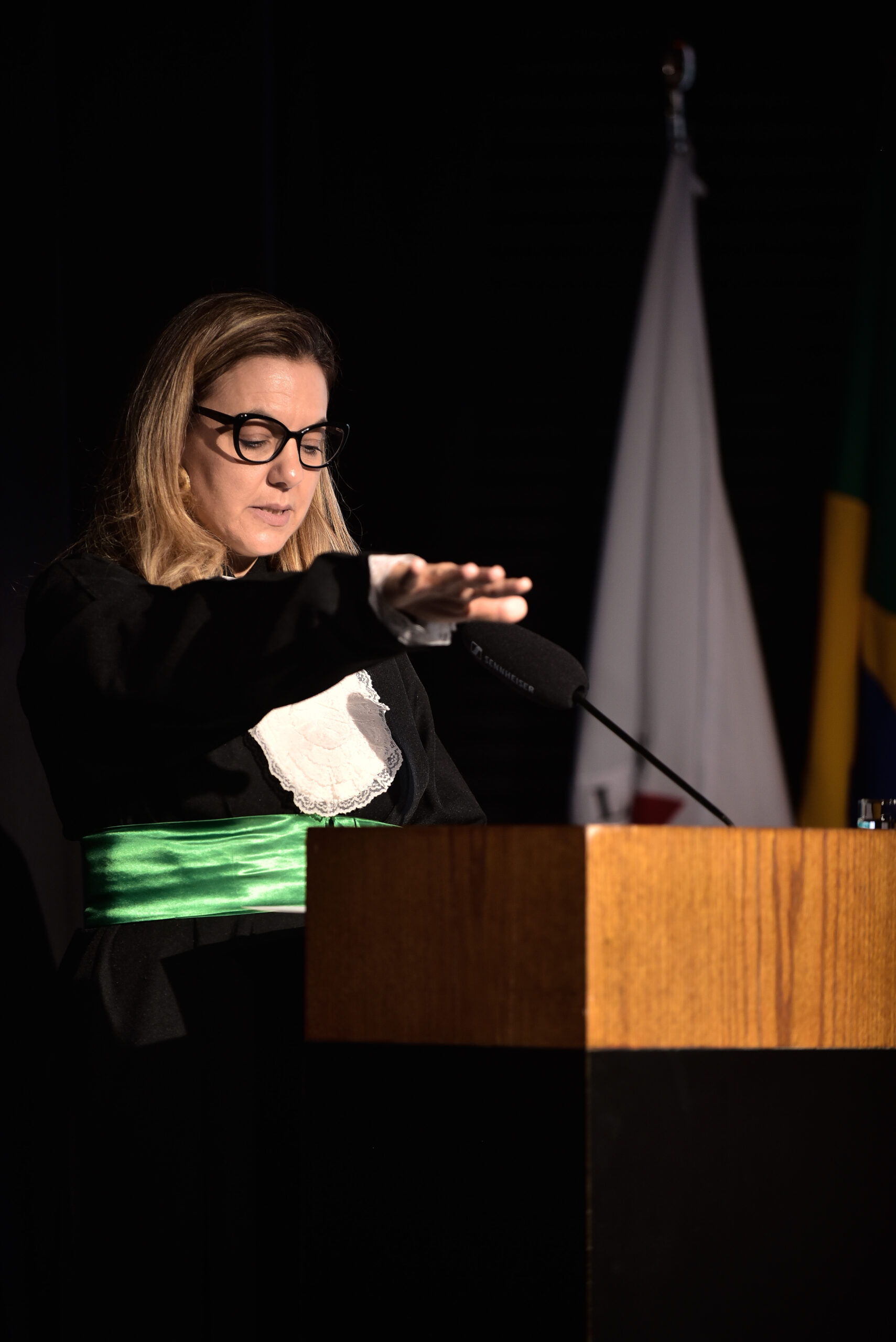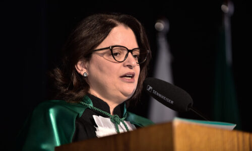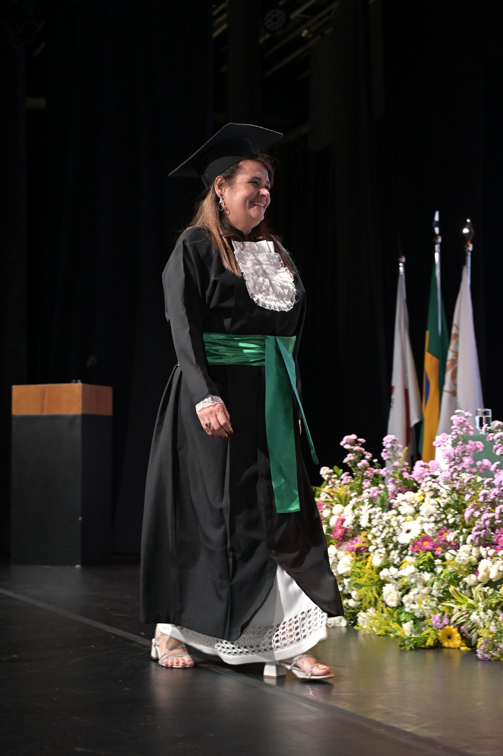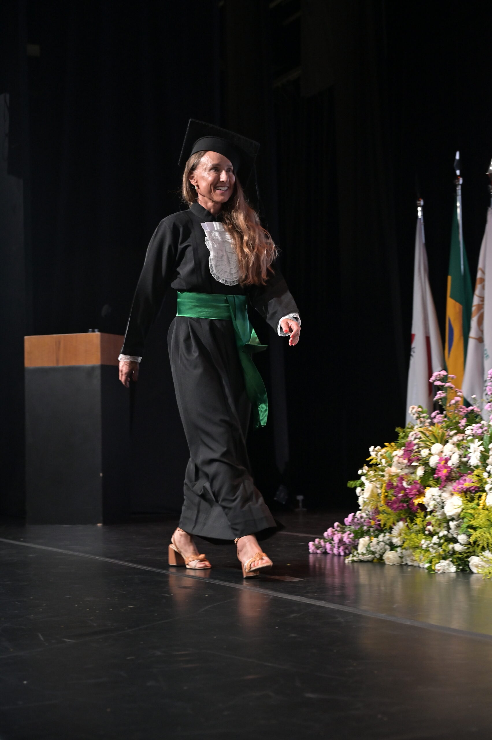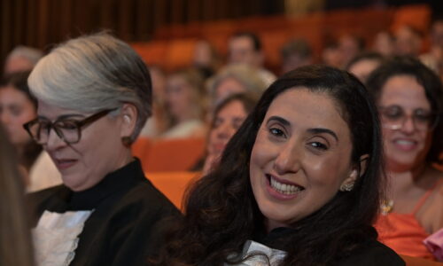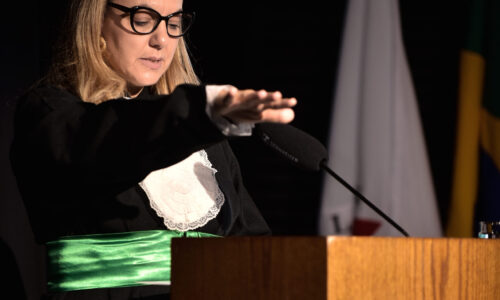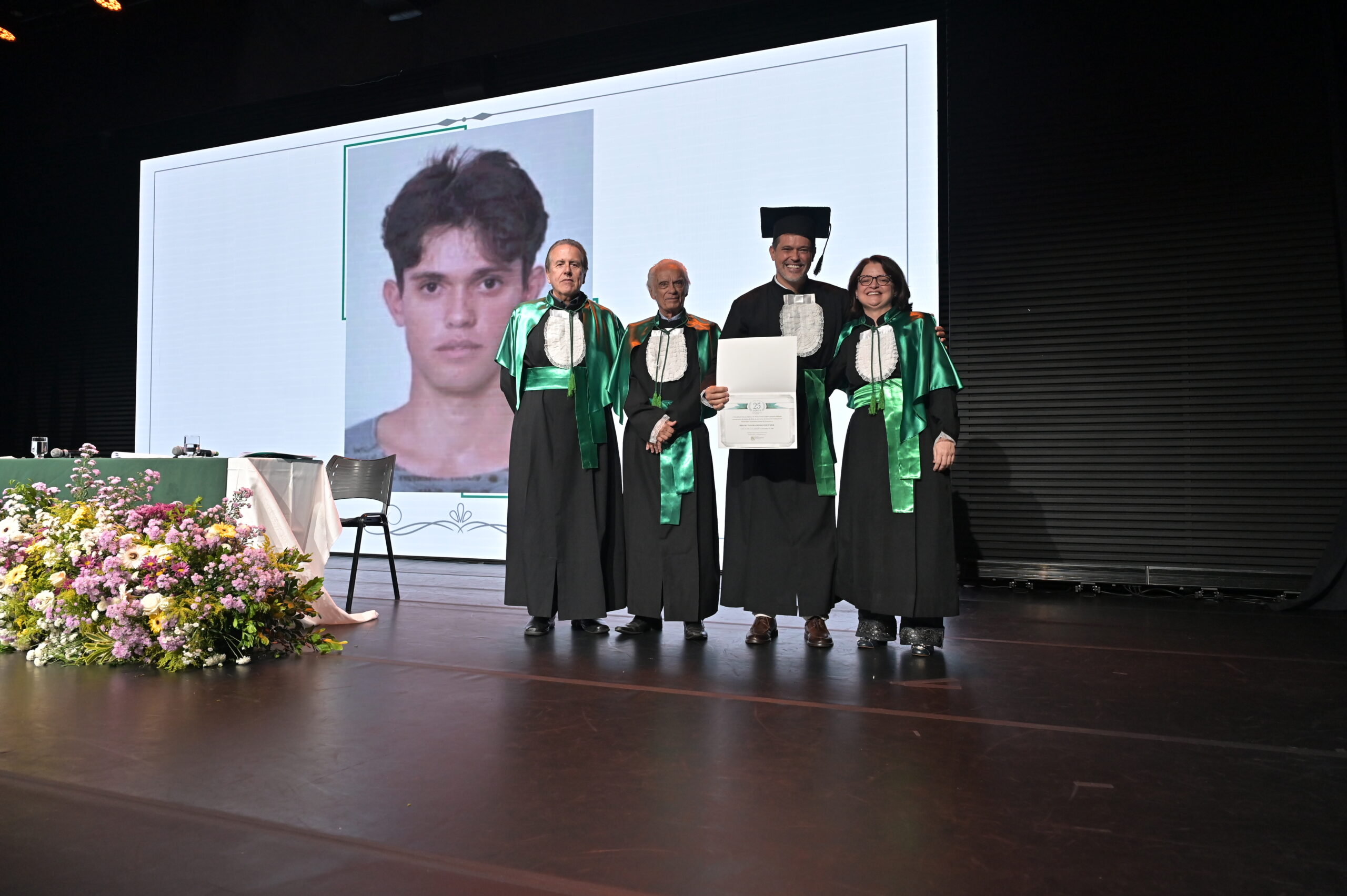 Um agradecimento especial foi dedicado à egressa Juliana Drumond Furquim Werneck, idealizadora e principal organizadora da cerimônia comemorativa. Muito querida por seus colegas, Juliana é reconhecida por manter o grupo unido e promover momentos de celebração ao longo dos anos. Em sua palestra, o Prof. Geraldo Magela reservou um momento especial para homenageá-la, presenteando-a com sua apresentação e destacando a relevância histórica de sua família para a Feluma e para a medicina mineira. Seu avô, Dr. Jaime Werneck, foi professor da FCM-MG e médico ginecologista, e seu bisavô, Dr. Hugo Werneck, foi um dos fundadores da UFMG, um dos primeiros médicos de Belo Horizonte e mentor do Dr. Lucas Machado.