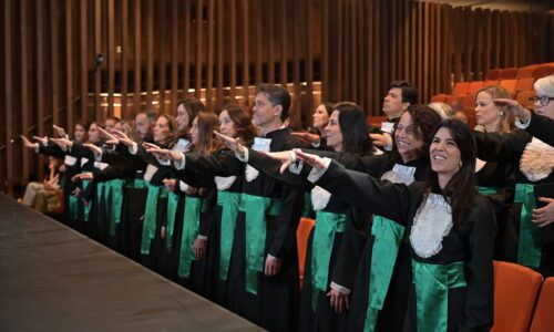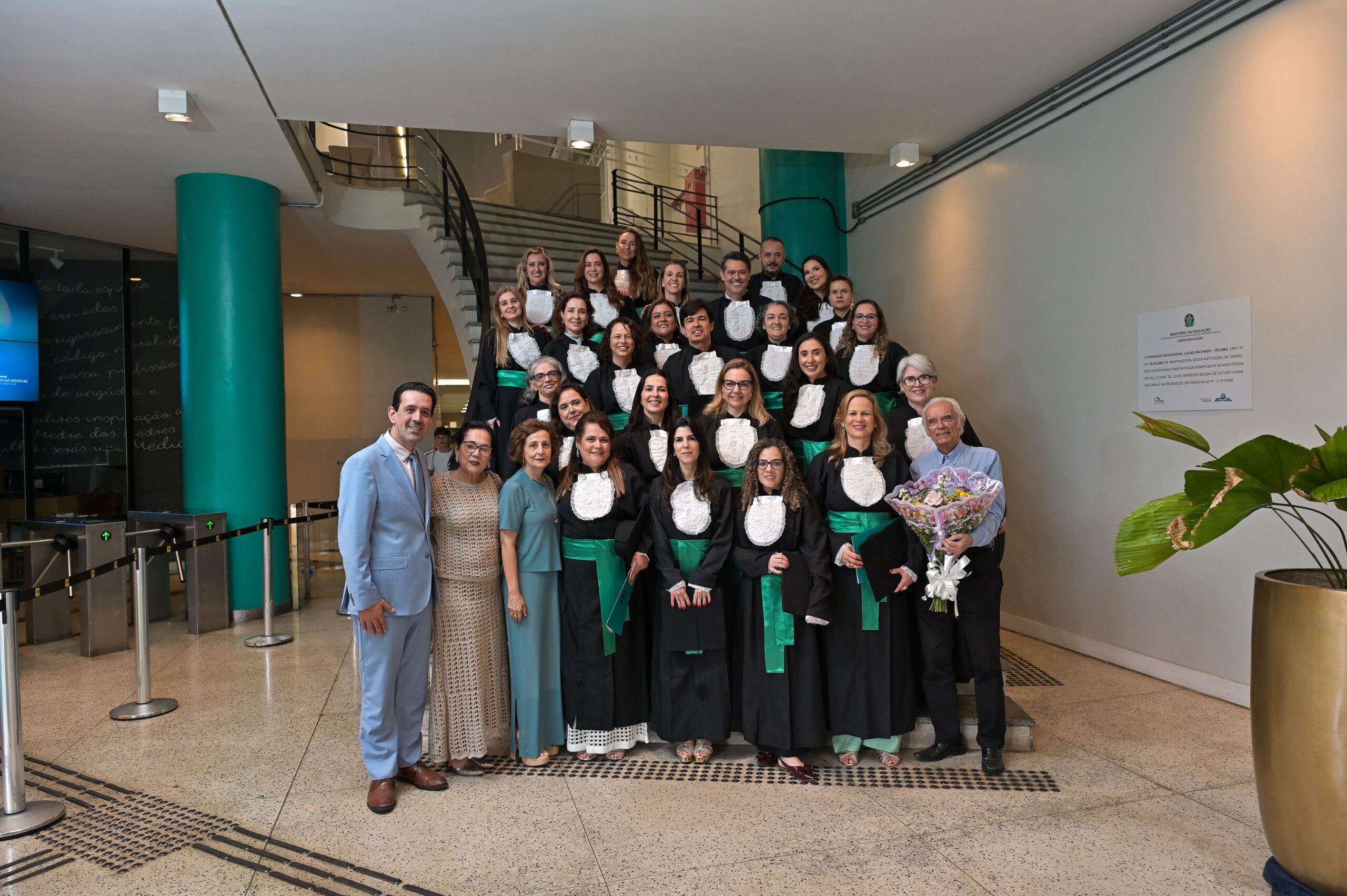 Prestigiando a cerimônia, estiveram presentes ainda a Prof.ª Susan Martins Lage, vice-diretora da FCM-MG, e o Prof. Anderson Coelho, professor da FCM-MG e presidente do CREFITO-MG. A turma também convidou docentes que fizeram parte de sua trajetória acadêmica, reforçando o vínculo de gratidão e reconhecimento. Entre os professores presentes, destacou-se a Prof.ª Maria da Glória Rodrigues Machado.
