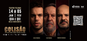 O Teatro Feluma recebe, entre os dias 14 de janeiro e 5 de fevereiro, o espetáculo “COLISÃO”. Parte da programação da 51ª Campanha de Popularização do Teatro e Dança, a peça traz aos palcos a consagrada dupla Ilvio Amaral e Maurício Canguçú, acompanhados pelo ator Lucas Barbosa. As apresentações ocorrem sempre às quartas e quintas-feiras, às 20h.