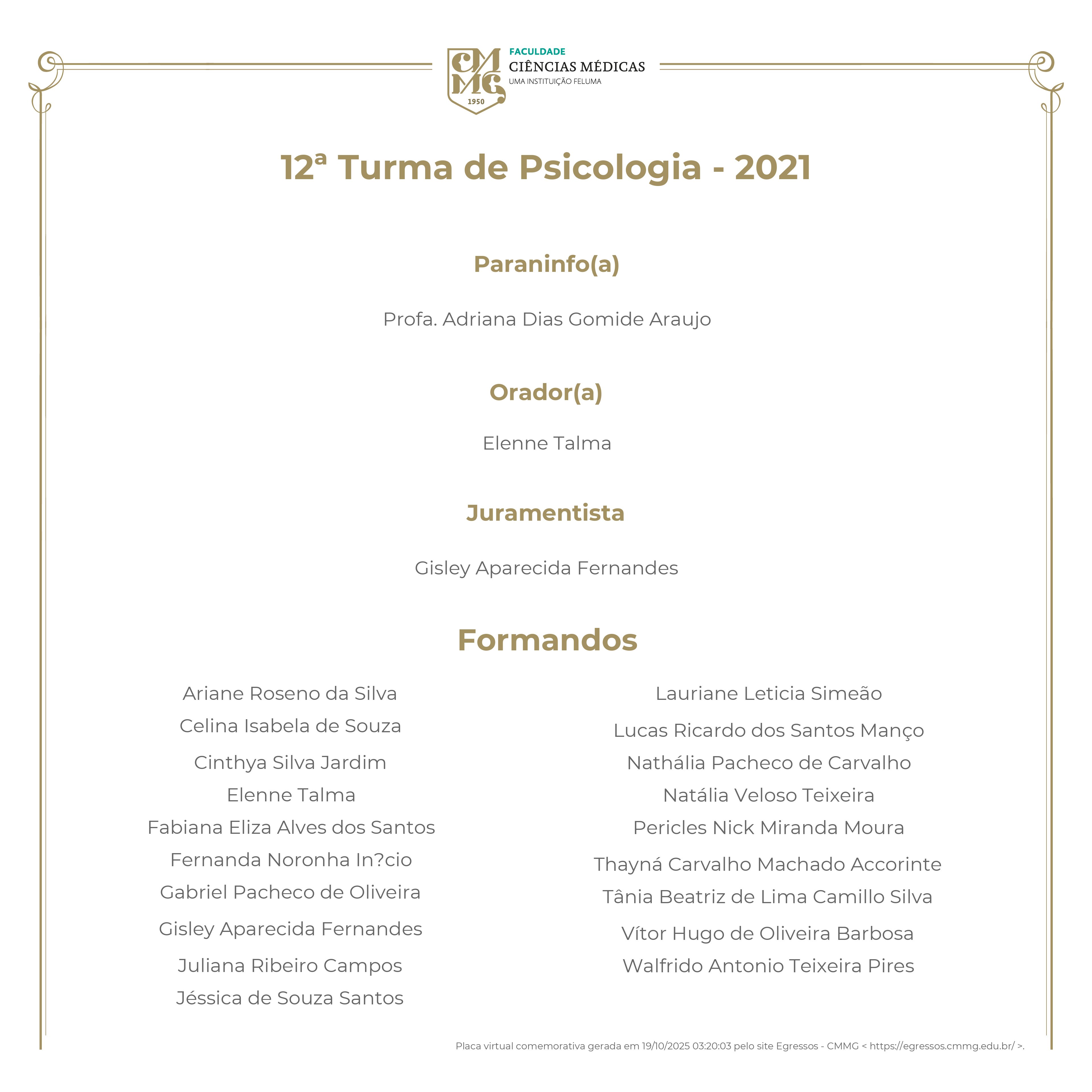 12ª Turma de Psicologia - 2021