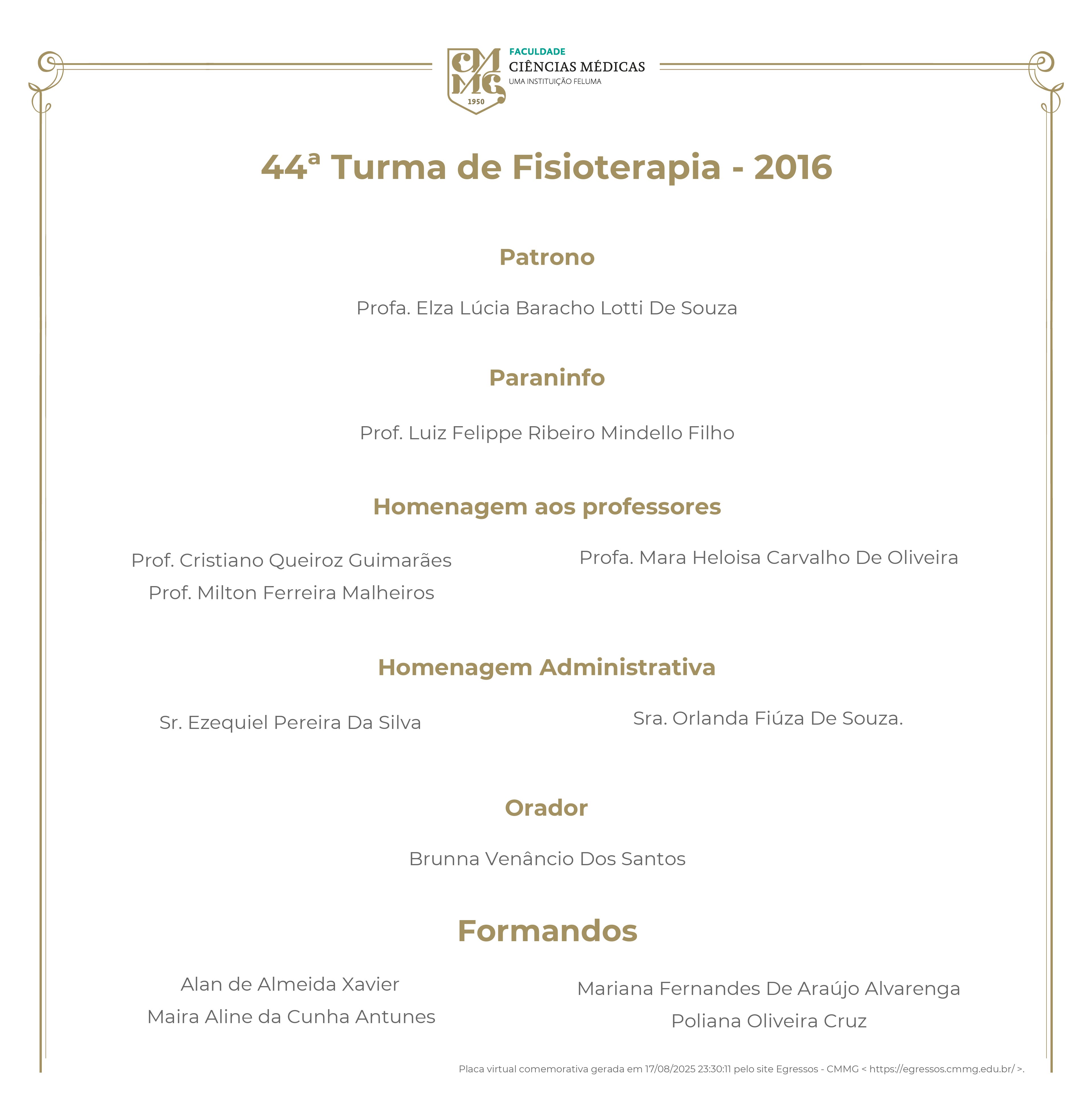 44ª Turma de Fisioterapia - 2016